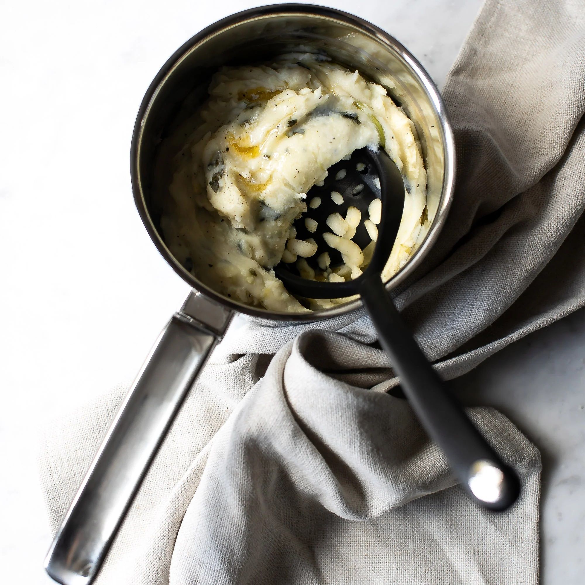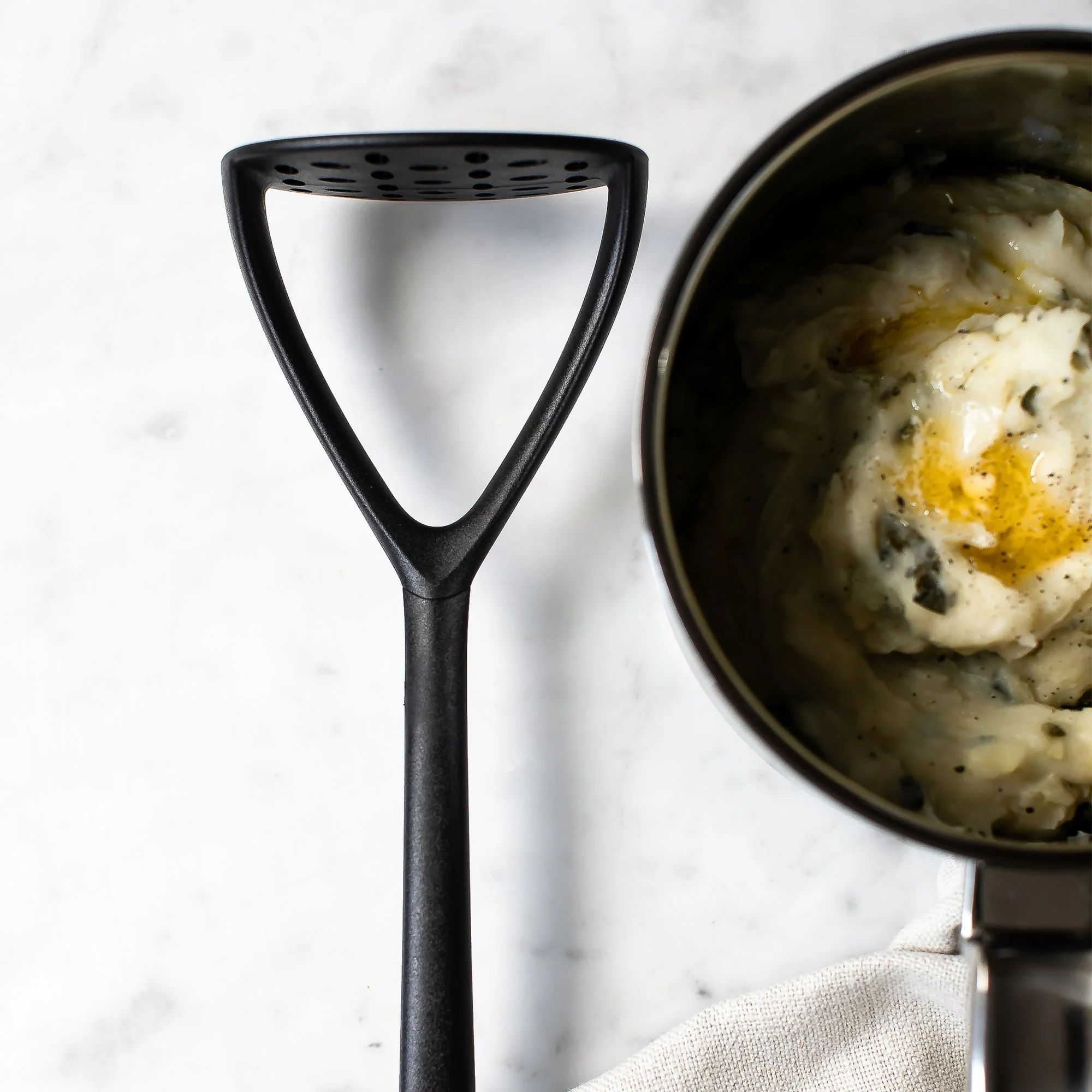 Фирменная картофелемялка SIGBK2519V, серии Signature, с антипригарным покрытием, изготовлена из высококачественного пищевого нейлона 66 и подходит для использования со всеми типами посуды, включая кастрюли с антипригарным покрытием.