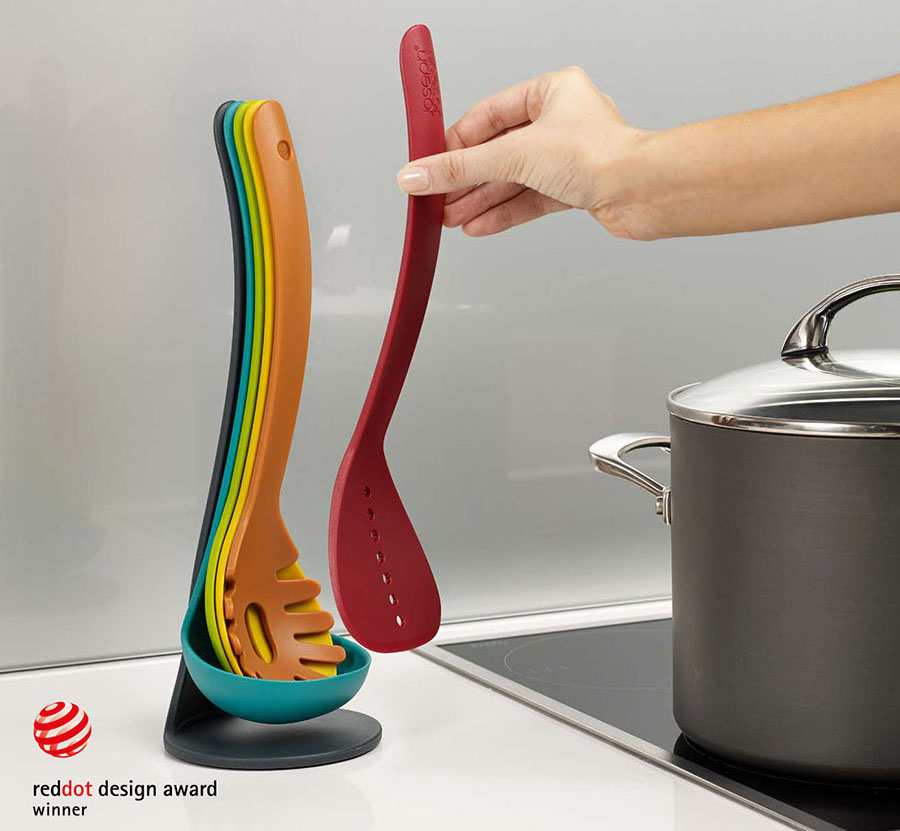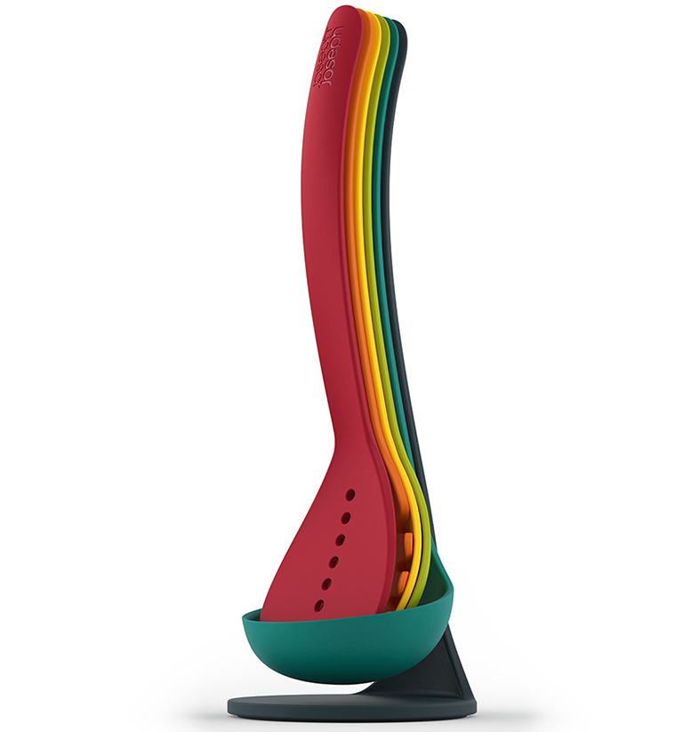 Приборы надежно крепятся друг к другу благодаря небольшим магнитам, встроенным в рукоятки. Этот разноцветный набор не только великолепно смотрится, но и избавляет своих владельцев от необходимости приобретать какие-либо отдельные емкости для хранения приборов. В набор входит: