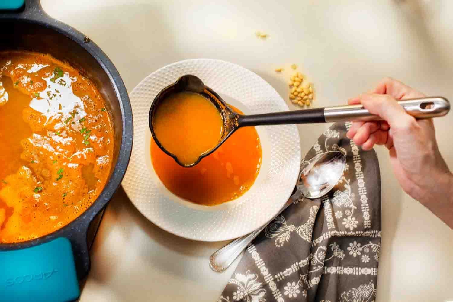 Высокая термостойкость материалов из которых изготовлен половник, позволяет выдерживать температуру до 240°C , что делает его безопасным для использования со всеми типами кухонных принадлежностей без каких-либо опасений.