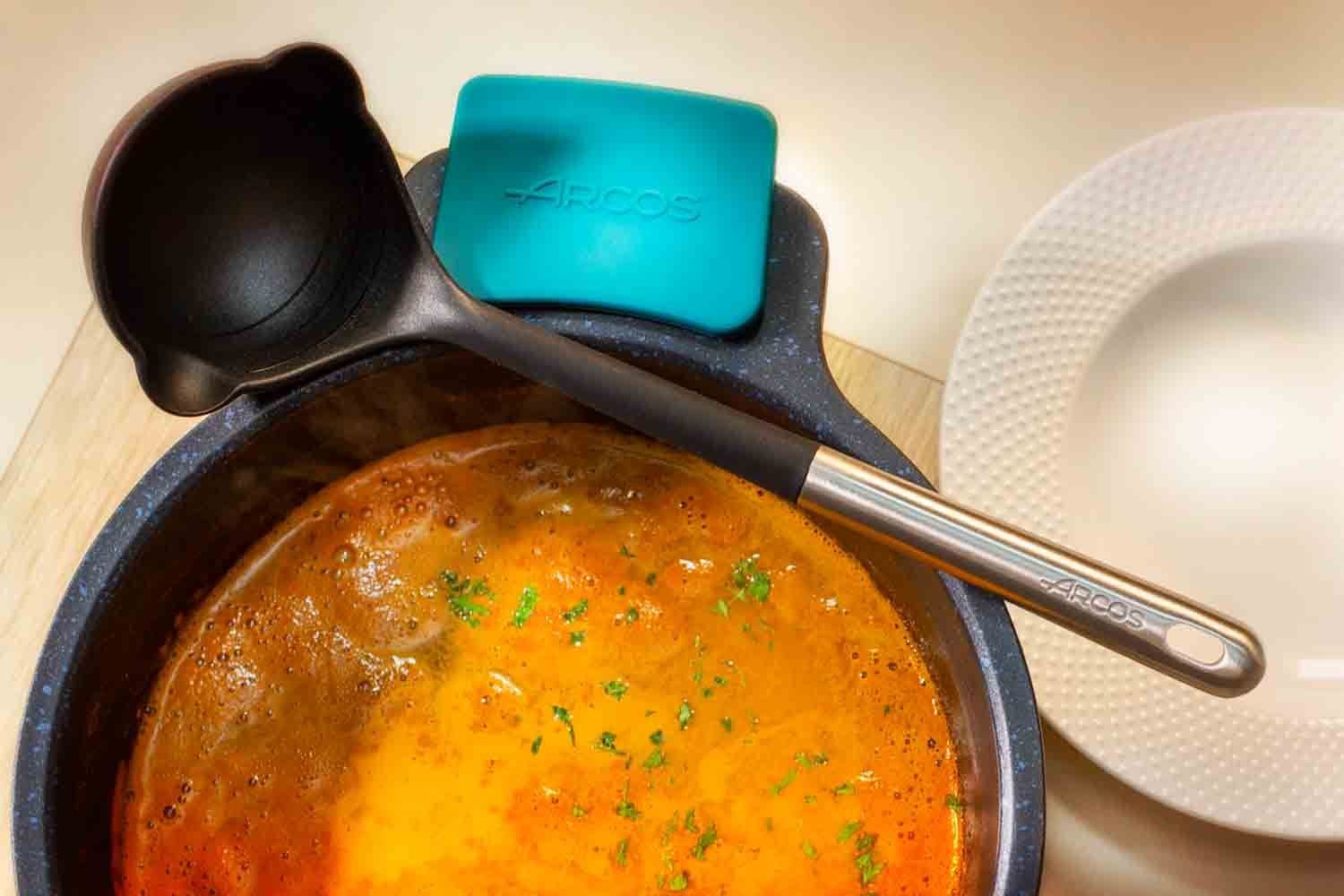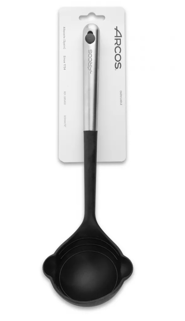 Половник Arcos, выполненный в эргономичном дизайне, имеет удобную и практичную форму, которая идеально ложится в руку, что позволяет легко наливать еду, не допуская проливания.