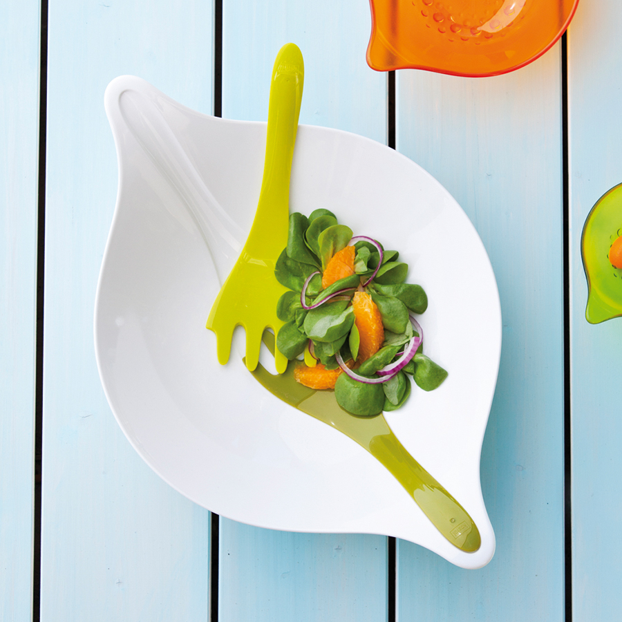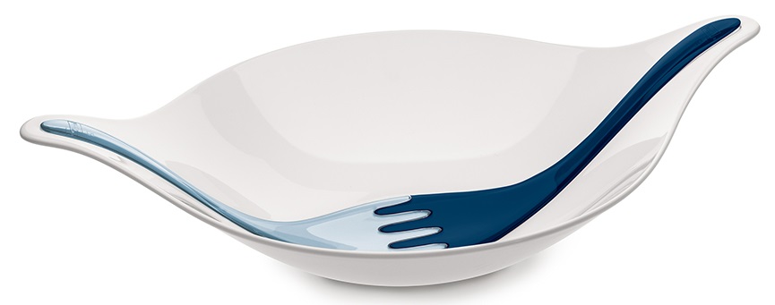 Название товара: салатница с приборами LEAF L+, 3 л, бело-синяя.